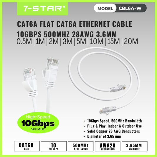 0.5M-20M White Flat CAT6A Ethernet Cable | 10Gbps 500MHz | CBL6A-W