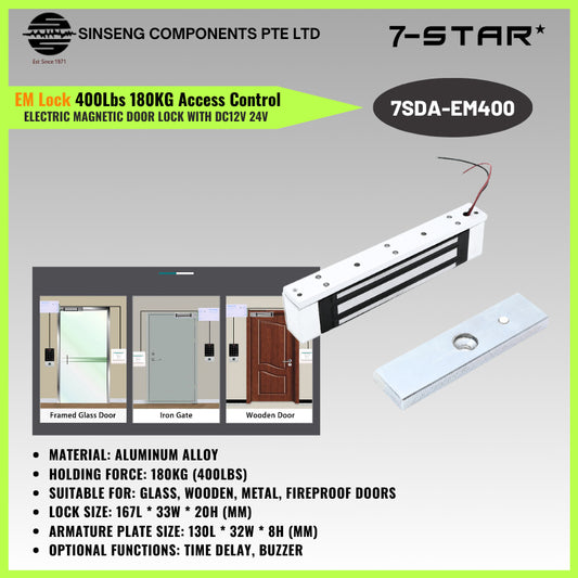400lbs EM Magnetic Door Lock 12V Access Control (180KG) | 7SDA-EM400