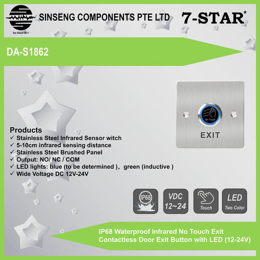 IP68 Waterproof Infrared No-Touch Exit Button with LED (12-24V) | DA-S1862