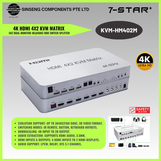 4K HDMI 4x2 KVM Matrix Switcher for USB Keyboard/Mouse | KVM-HM402M