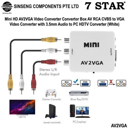 Mini AV2VGA Video Converter with 3.5mm Audio | AV to VGA/PC/HDTV