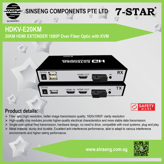 20KM HDMI Extender 1080P Over Fiber Optic with KVM & Power Adapter | HDKV-E20KM