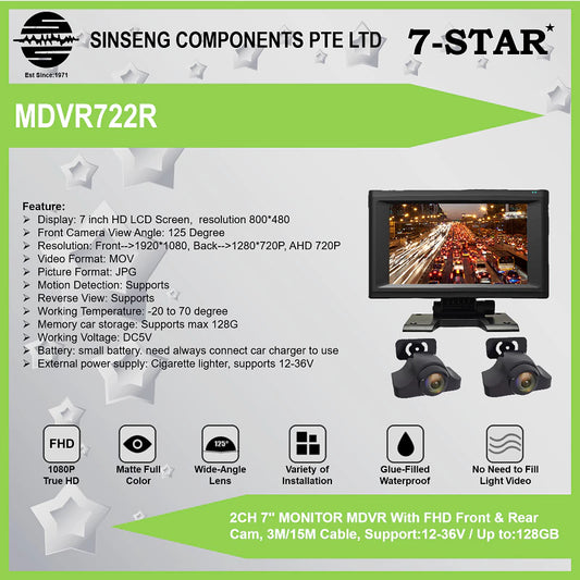 Full HD 1080P Dual Camera with Vehicle DVR | MDVR722R