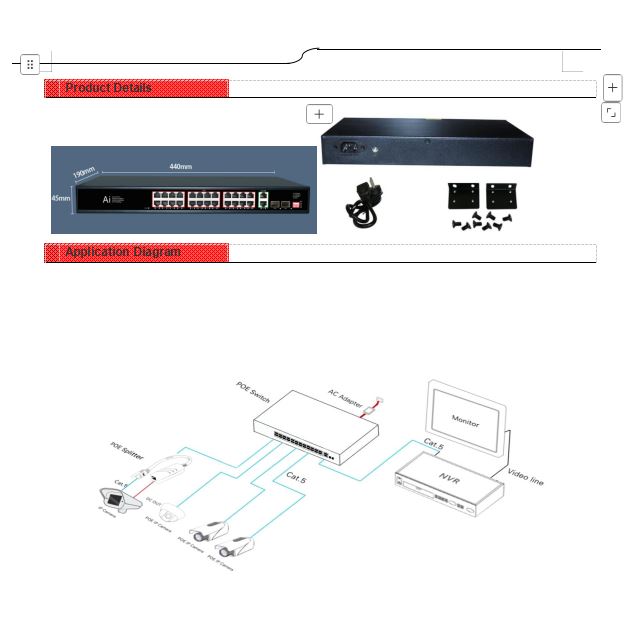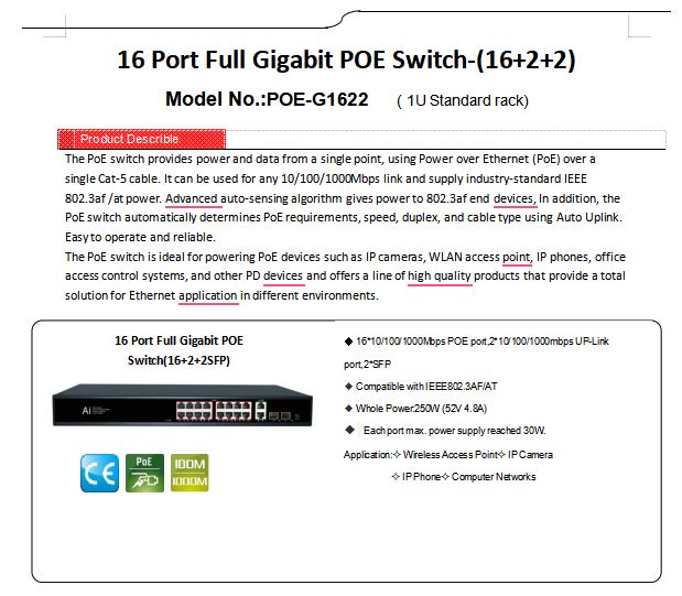 Total PoE power output: 250W (52V 4.8A)