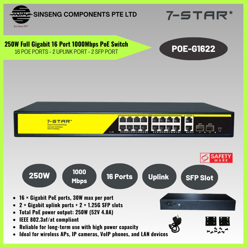 250W 16-Port Gigabit PoE Switch with Uplink & SFP | POE-G1622
