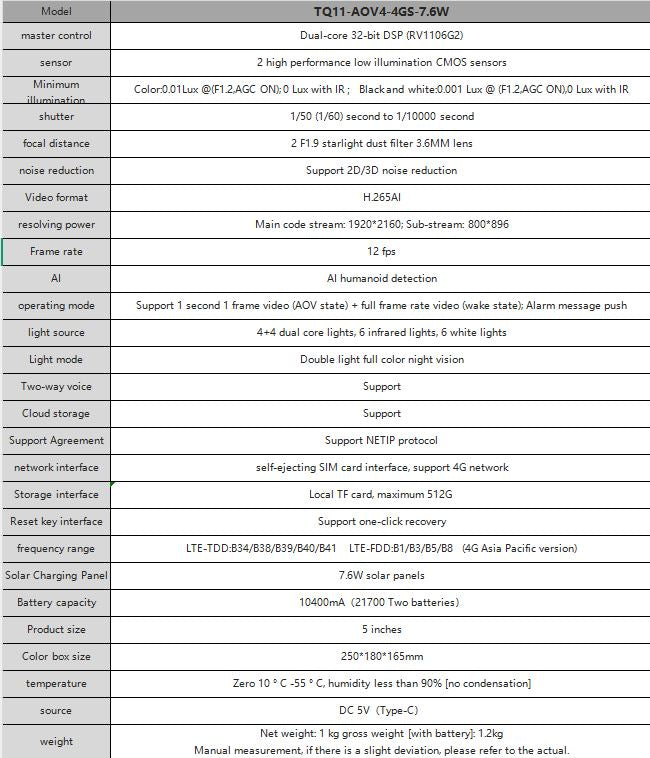 Lighting: Dual-core 4+4 lights, 6 infrared lights, 6 white lights for full-color night vision