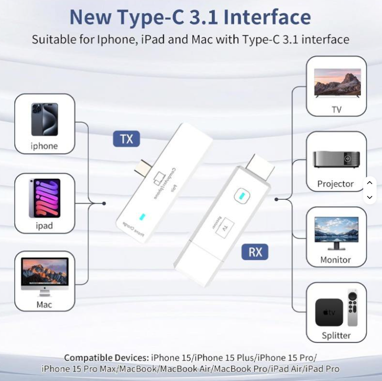 Type-C Transmitter for Laptop / Phone / Tablet (DP Supported)