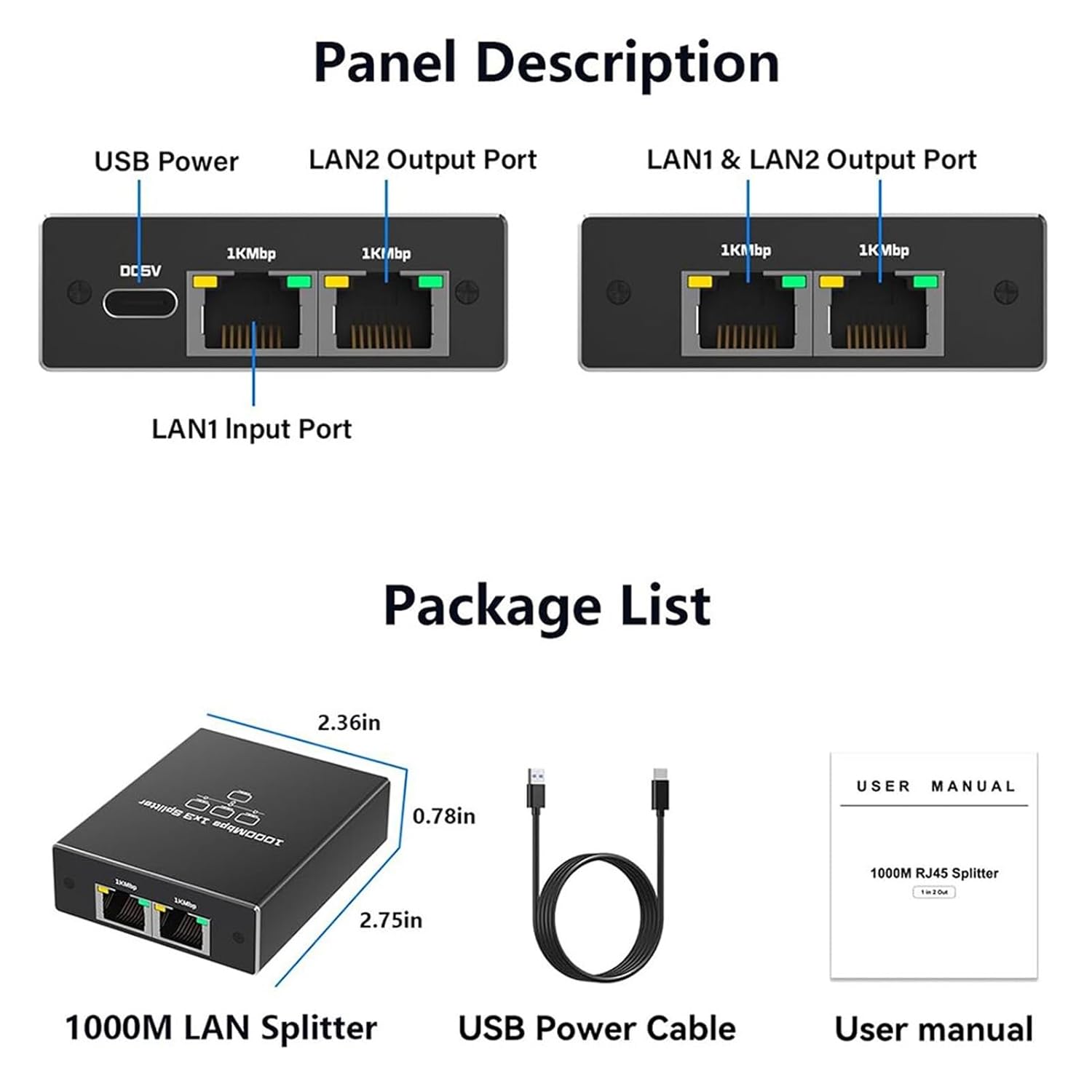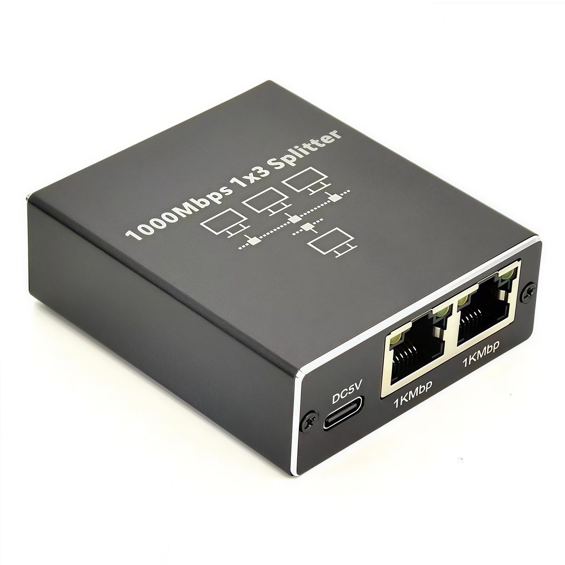 Ethernet Splitter 1 to 3 RJ45 Gigabit LAN Adapter with USB Power