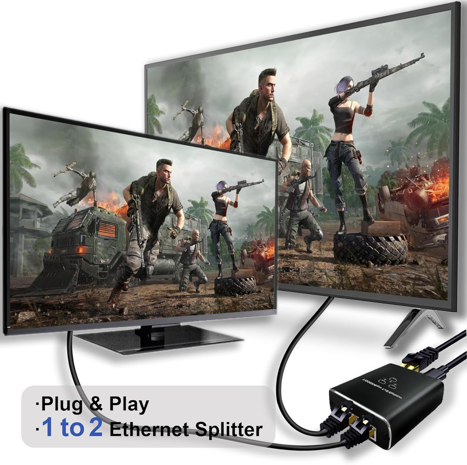 1 to 2 Ethernet Splitter – Share one LAN cable for two devices simultaneously