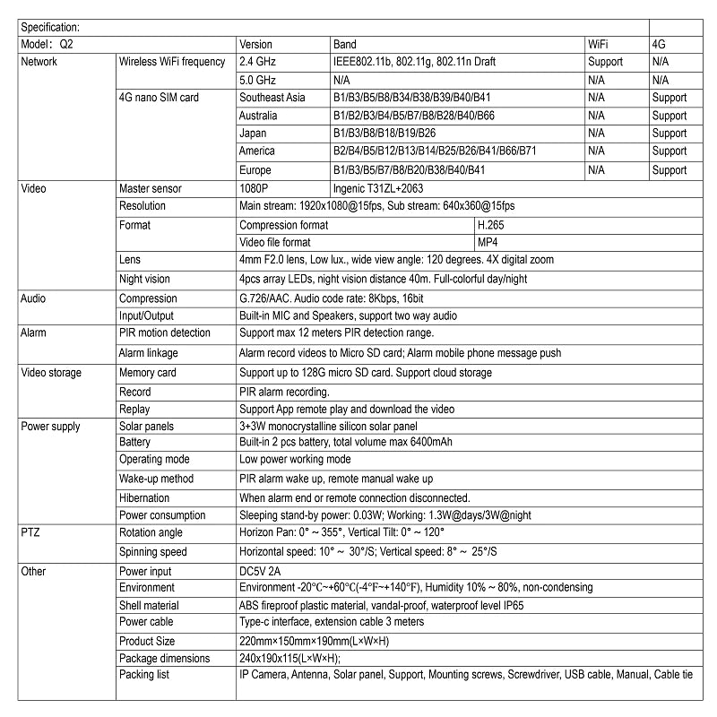 2MP Mini Solar PTZ IP Camera | Q2 WIFI / 4G