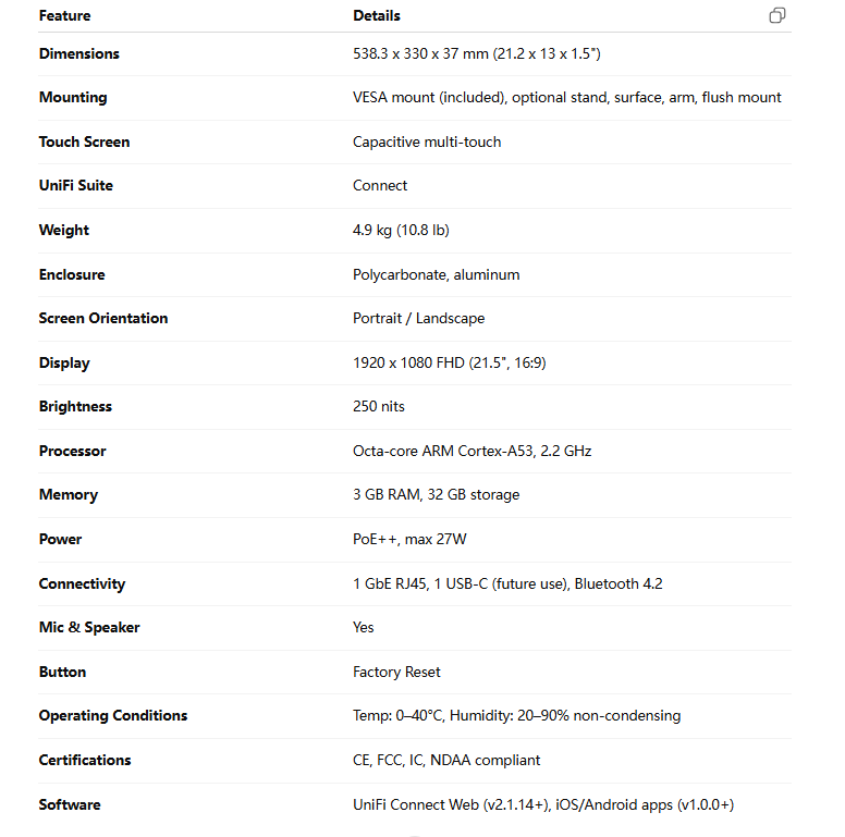 Ubiquiti Unifi UC-Display 21.5" PoE++ Touchscreen with Built-in Audio & VESA Mount