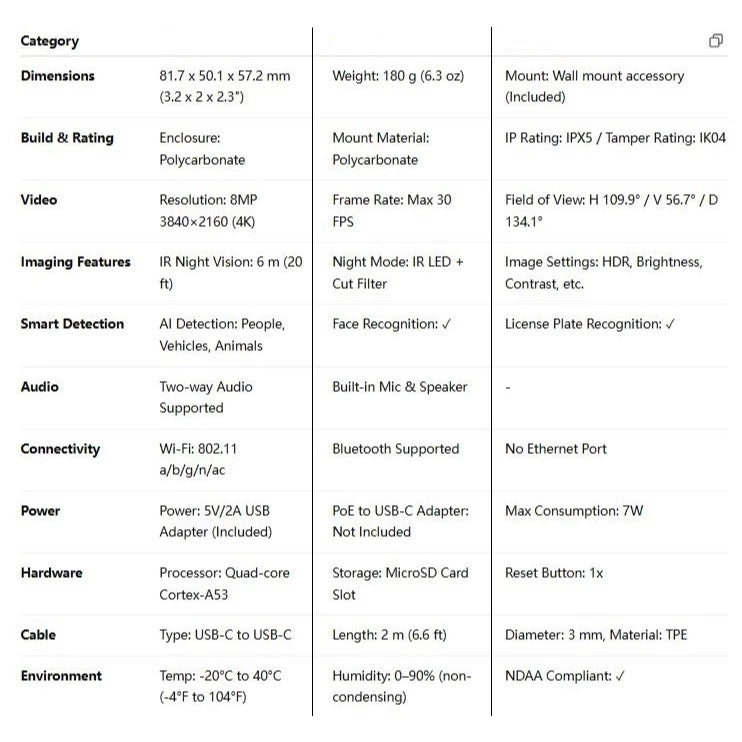 Compact & Weather-Resistant Design Small form factor (81.7 mm x 50.1 mm x 57.2 mm) with IPX5 waterproof rating and IK04 tamper resistance.