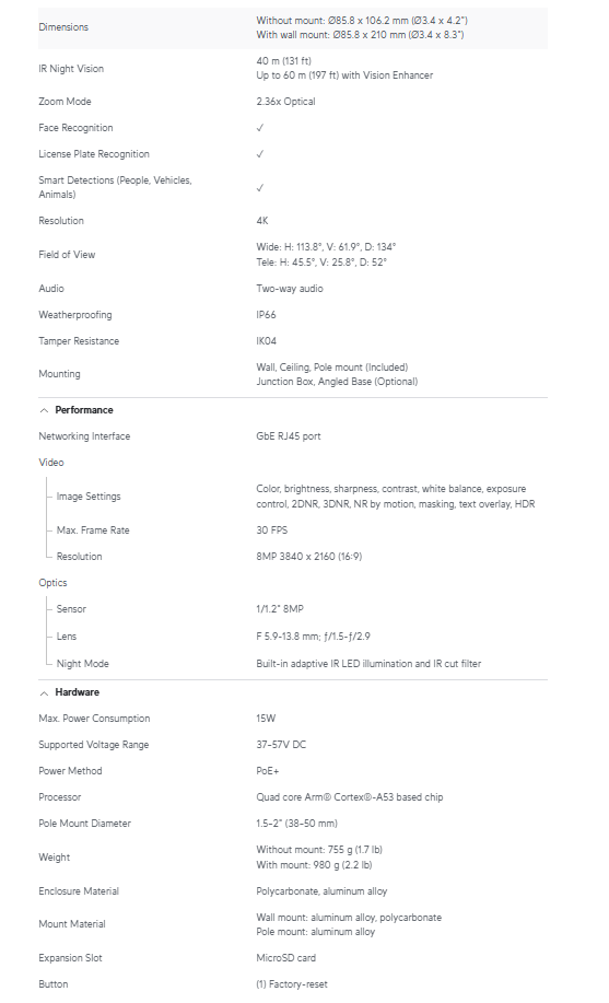 4K Ultra HD (8MP) Video – Crystal-clear footage with exceptional detail.
